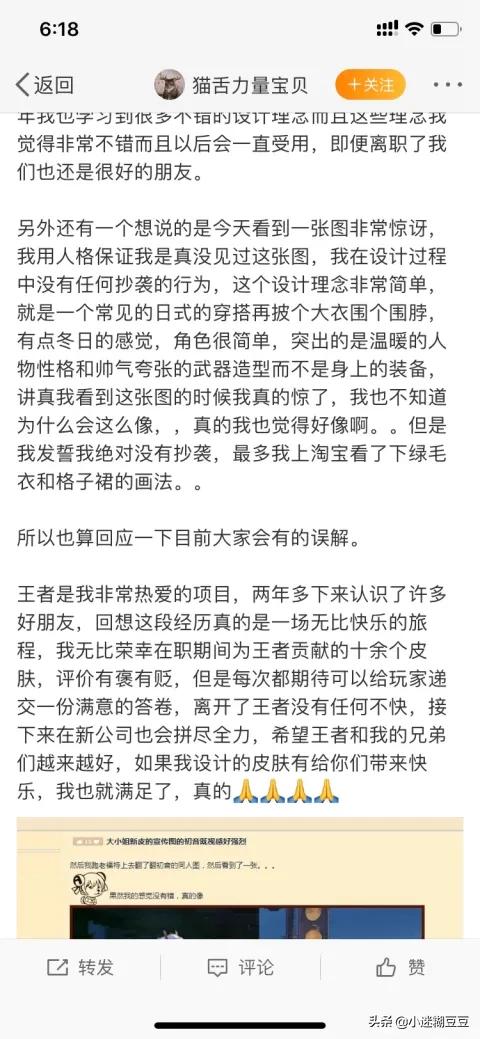 最近一次抄袭事件是五五开黑节的专属皮肤瑶的遇见神鹿,当时还有一周就要上架了,结果被大量玩家投诉鹿的设计完全就是复刻国内某画家的作品神鹿,在原作者的维权下,天美不得不官宣《遇见神鹿》回炉重做,并且第一时间公开发布了道歉信以及修改书。在五五开黑节之前连夜赶工才得以如期发布!而这一次的时之恋人官宣的时间比较短,仅剩下两天的时间就要上架520表白节专属皮肤了!距离上一次抄袭事件还没过去半个月,新皮肤就沦陷了!可见天美内部目前有多混乱啊!