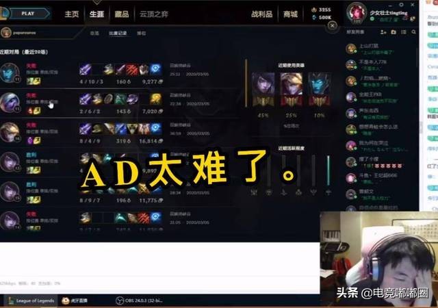 随后小狗便开始查起了其他ADC的战绩,先是看了一下阿水的,小狗说每一局都是七八次死亡,只有EZ死的比较少,同时,小狗又翻了一下imp的,战绩同样的惨,基本上玩AD的都不好过。Uzi直言给自己看晕了。