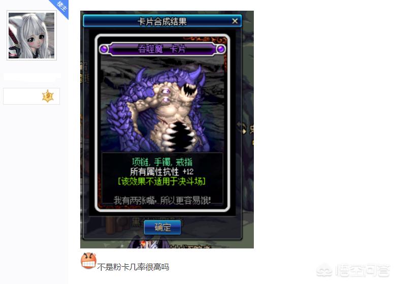 DNF眩惑之塔玩家合成卡片晒出极品粉卡,你合到了什么卡片呢