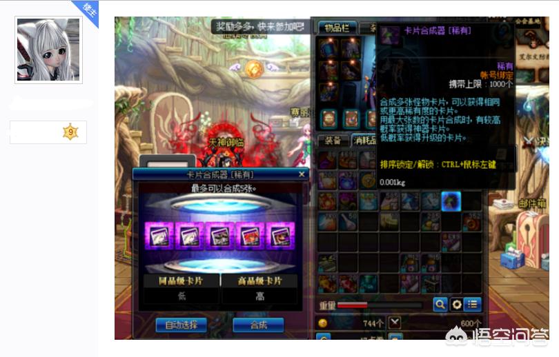 其实眩惑之塔能出粉卡的玩家不多,但是出稀有卡片合成器的玩家还是蛮多的,很多玩家都想着今天合出卡片大发一笔。稀有卡片合成器可以放进5张紫卡,放入5张紫卡合成粉卡的几率最高,但也并不一定100%合出粉卡,不过还是有不少狗托出现。