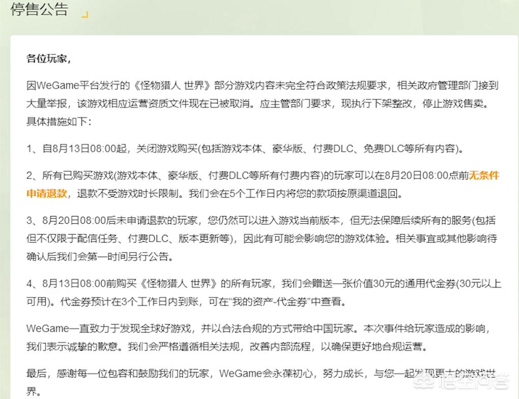 不过这次mhw的下架,损失最大的是wegame的玩家,哪怕是能退款。
