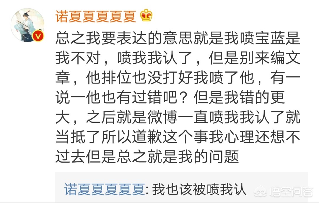 诺夏微博发文公开向宝蓝道歉,粉丝不买账纷纷要求别扯uzi,诺夏的这份道歉你认可吗