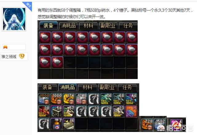 这位老哥也真的有点闲,2000个黑钻硬币手都点抽筋了吧,总结一下收获,58个调整箱,7瓶50点疲劳药,4个魔锤,期限黑钻称号一大堆,还有一个永久的,还有将近两千个牛奶和面包,变身药剂啥用没有。