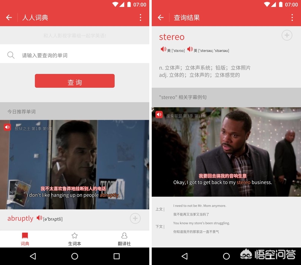 这个绝对是美剧迷中的心头好啊,它不仅可以显示你所查询单词在所有影视剧中的位置,还能选择播放原音或者观看视频,简直不能再赞。